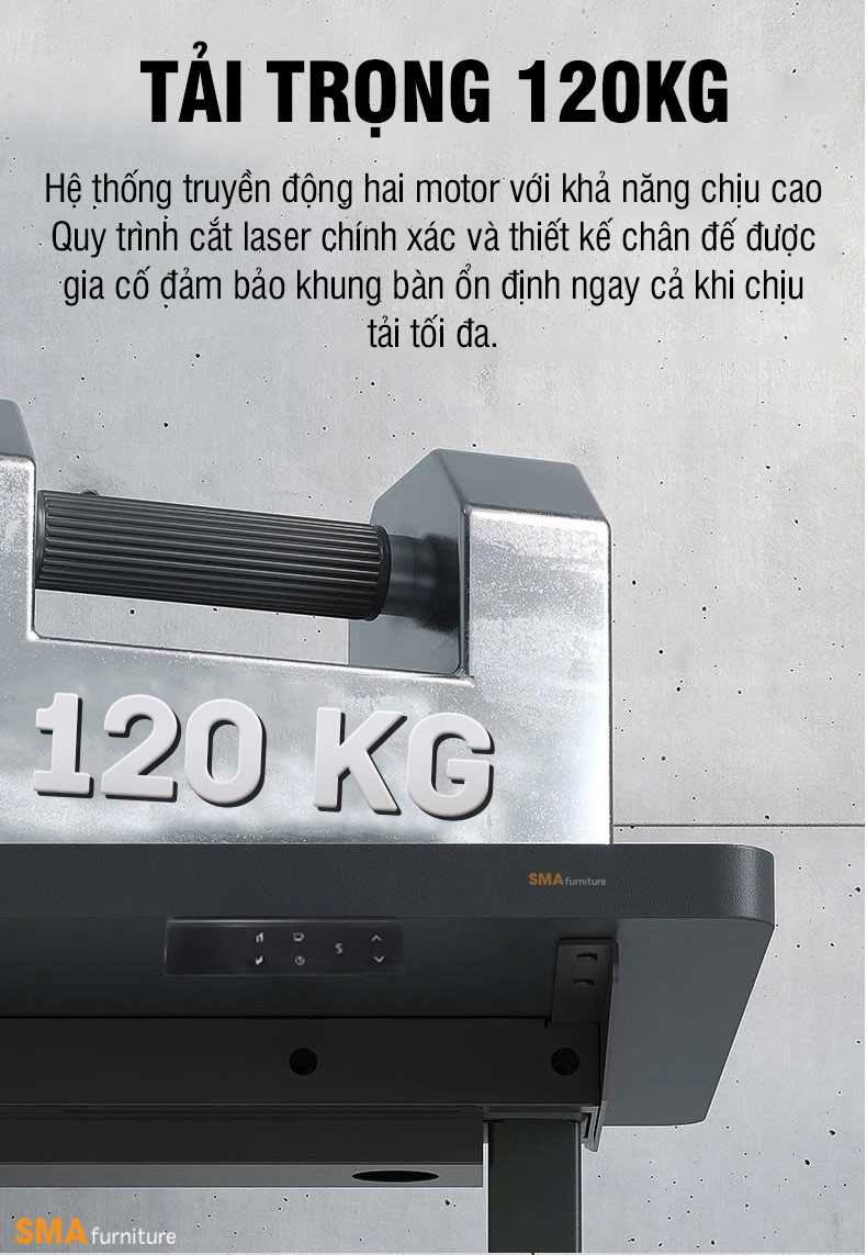 SMA HiLeg-V có thể chịu tải trọng tối đa lên đến 120kg, mang lại sự vững chãi cho bàn khi bạn sử dụng với các thiết bị nặng hoặc nhiều vật dụng khác nhau.