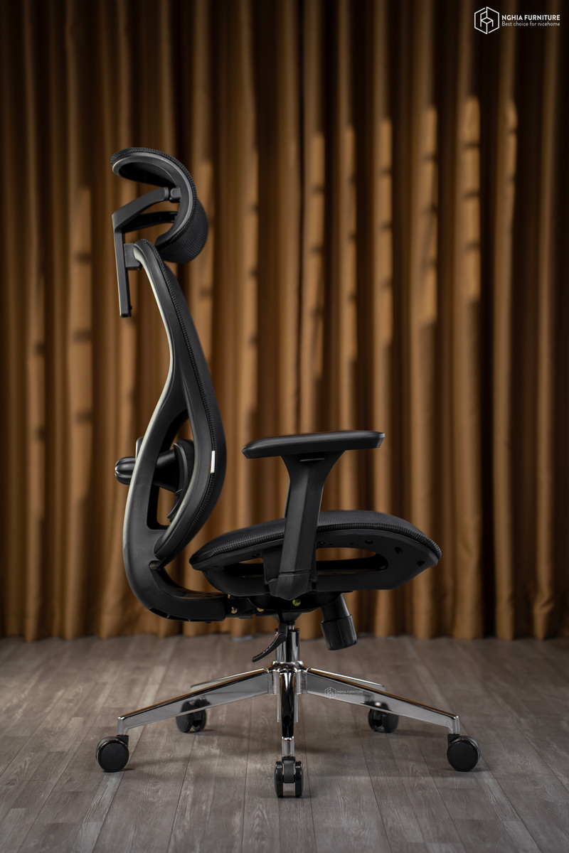 Phần tay vịn 4D có thể điều chỉnh cao – thấp, trượt trước – sau, xoay trong – ngoài, giúp người ngồi dễ dàng tìm được tư thế thoải mái nhất dù đang gõ máy tính, viết tài liệu hay thư giãn giữa giờ. Đây là chi tiết nhỏ nhưng rất quan trọng trong việc duy trì tư thế đúng và giảm mỏi vai gáy.