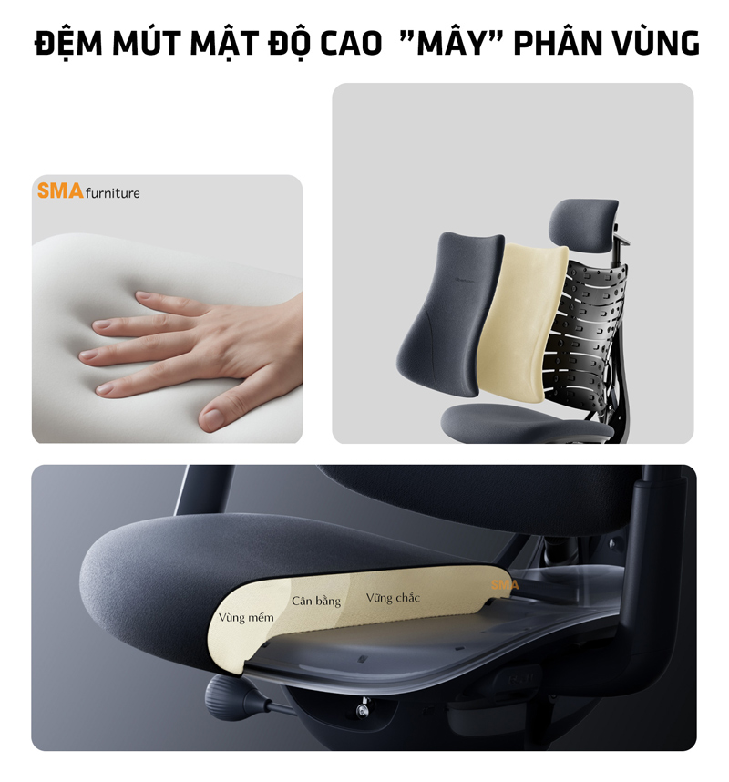 - Firm zone: Khu vực phía sau: Nâng đỡ trọng lượng cơ thể một cách vững chắc, đảm bảo tư thế ổn định và thẳng hàng cột sống