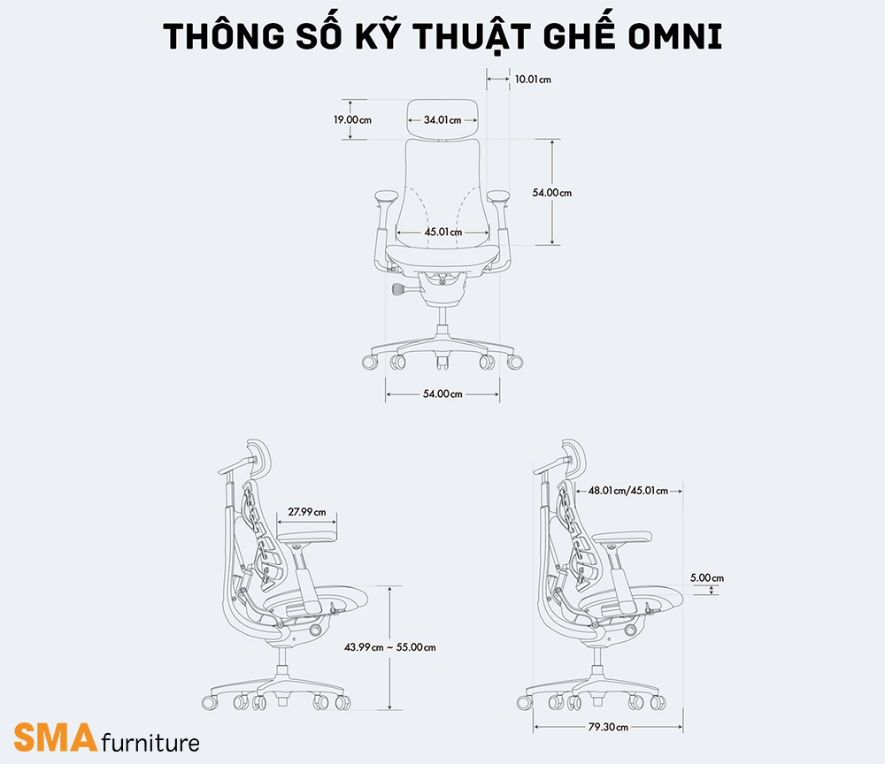 Thay vì cố định cơ thể trong một tư thế “chuẩn”, Omni cho phép bạn di chuyển tự nhiên, đồng thời duy trì sự nâng đỡ liên tục cho cột sống và các nhóm cơ. Toàn bộ cấu trúc ghế – từ tựa lưng, thắt lưng, tay vịn đến đệm ngồi – hoạt động đồng bộ, giúp giữ cơ thể luôn ở trạng thái thoải mái mà không cần điều chỉnh thủ công.