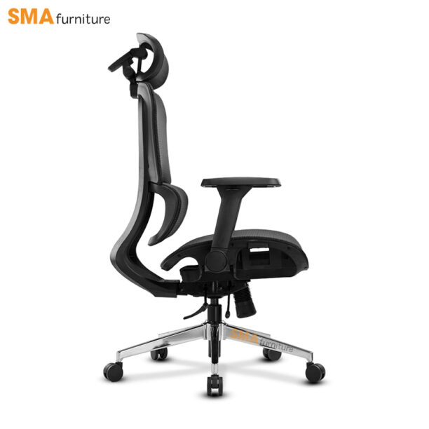 Tựa đầu của SMA Evo có thể điều chỉnh 4D cho phép tùy chỉnh vừa vặn với nhiều vóc dáng và thói quen ngồi khác nhau. Khi điều chỉnh đúng, tựa đầu giảm áp lực cho cổ và vai, hạn chế mỏi gáy khi làm việc lâu hoặc đọc tài liệu. Tính linh hoạt này cũng hữu ích khi bạn cần thay đổi nhanh tư thế giữa làm việc và nghỉ ngơi.