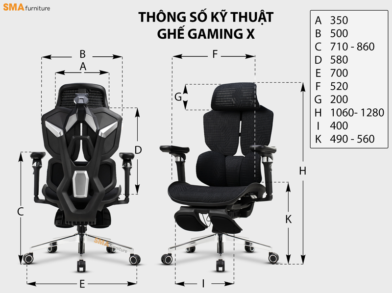 Ghế công thái học SMA Gaming-X là lựa chọn tuyệt vời cho cả dân văn phòng và game thủ. Với thiết kế thoáng khí, hệ thống điều chỉnh linh hoạt và khả năng hỗ trợ sức khỏe toàn diện, đây là sản phẩm đáng đầu tư nếu bạn thường xuyên phải ngồi làm việc hoặc chơi game trong thời gian dài.