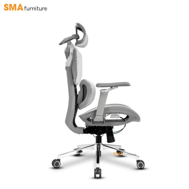 Tựa lưng được thiết kế mô phỏng theo hình dáng hai lá phổi, nhẹ nhàng ôm trọn phần lưng trên của người dùng. Cấu trúc này không chỉ mang lại cảm giác êm ái mà còn đóng vai trò như một “lá chắn” bảo vệ cột sống. Nhờ khả năng ôm sát và phân bố áp lực đồng đều, phần tựa lưng giúp giữ cho lưng trên luôn ở đúng tư thế, hạn chế tối đa tình trạng lệch vẹo hoặc gù lưng thường gặp khi ngồi làm việc trong thời gian dài. Đây là giải pháp lý tưởng giúp nâng đỡ toàn diện, đặc biệt phù hợp cho những người thường xuyên làm việc văn phòng hay ngồi nhiều giờ liên tục.