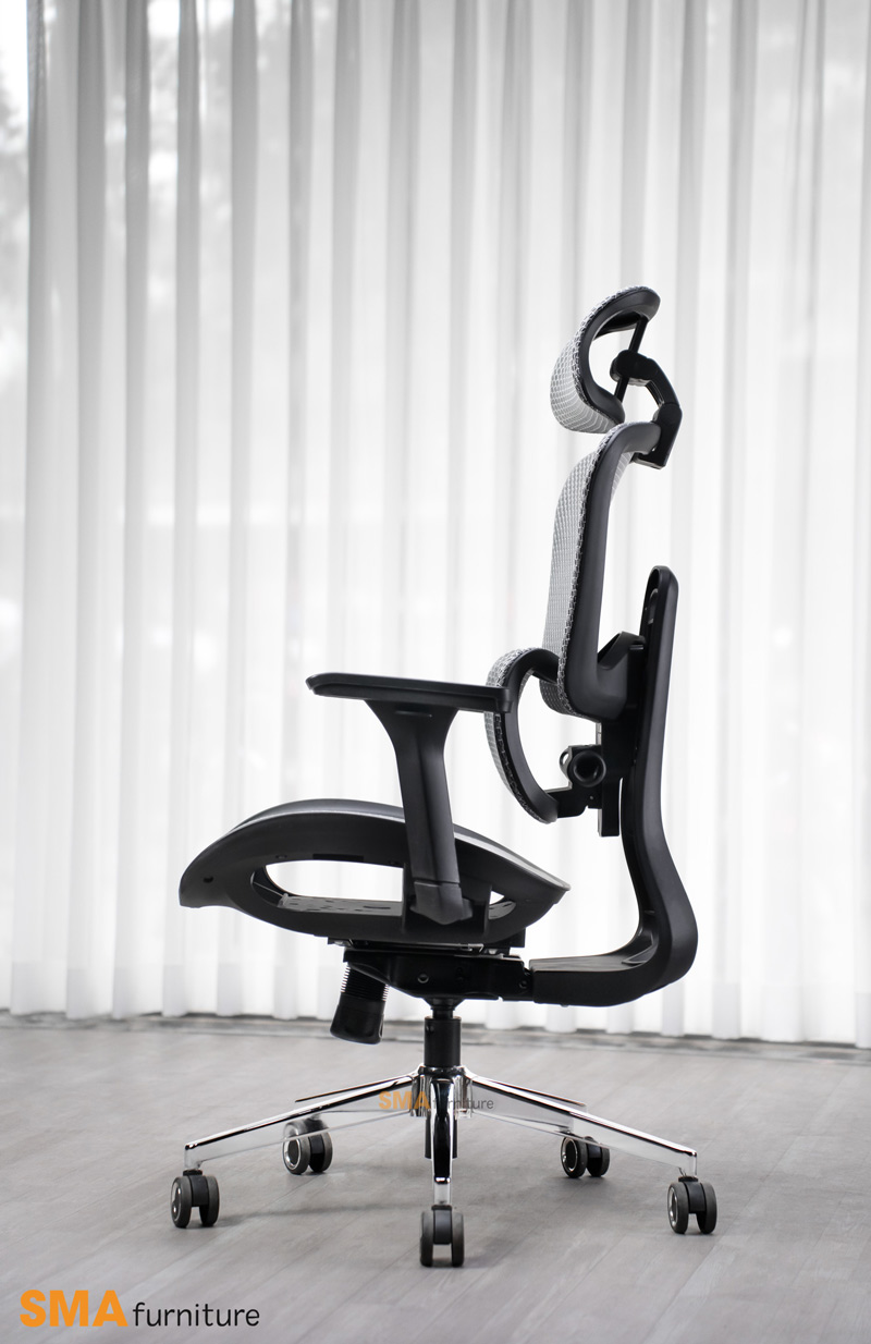| Ngả lưng | Ghế công thái học SMA Mirai ngả lưng 135 độ, khóa cố định 3 vị trí 90-120- 135 độ |